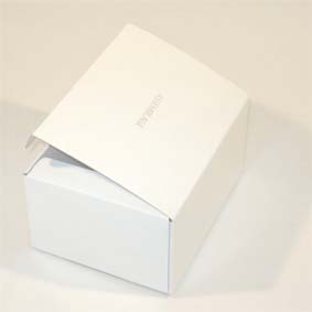 艶出し白段ボールにシルバー箔押し印刷を施して、高級感を出しています(底はアメロク)。ID:7A0C