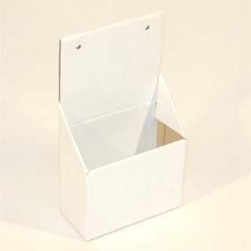 抜き組み立て式の箱で、 底ワンタッチ 材質:コートボール・EFの合紙 パンフレット等を配布用にセットするためのものです。 通常壁掛けで使用しますが、テーブルに置いても使えます。ID:7A1D