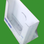 文房具などの店頭販売用です(ラッピングタイプ、糊貼りなし)。片白段ボールを用いてシンプルに仕上げています。ID:7A08